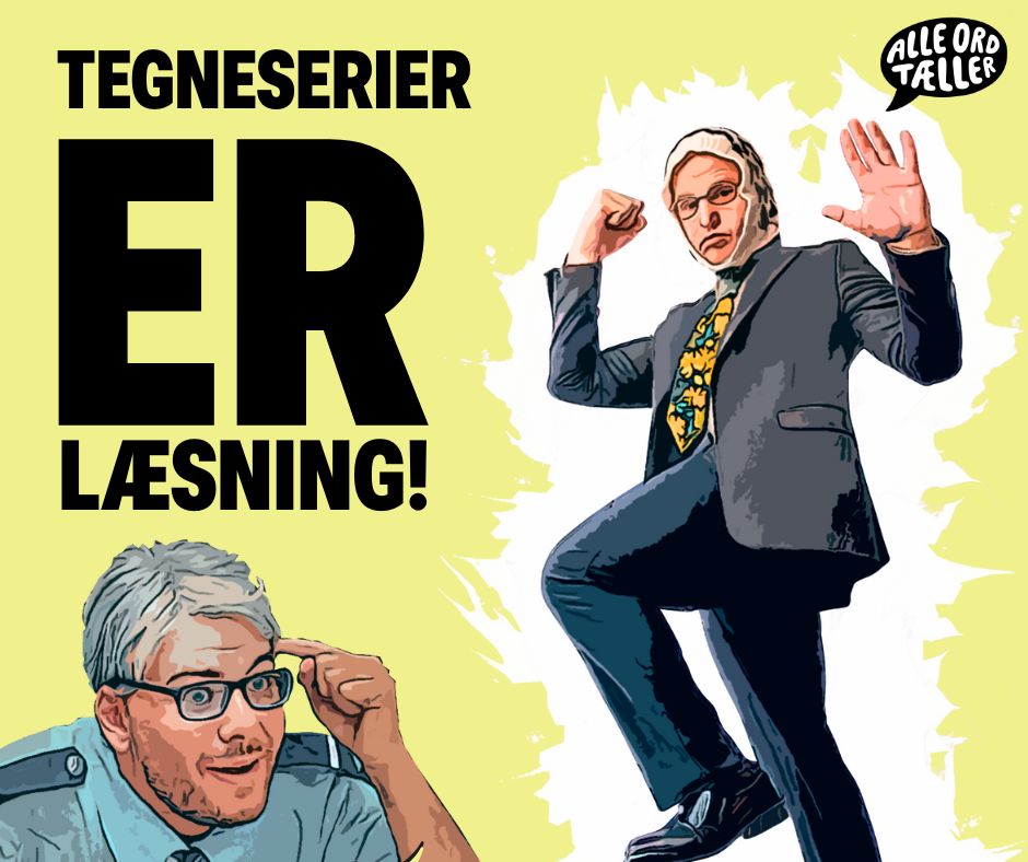 Her på siden finder du eksempler på og link til forskellige grafikker til print og digitalt brug i forbindelse med kampagnen "Tegneserier ER læsning!". Kampagnen kører fra uge 35 og må sættes op frem til d. 1. december 2025.